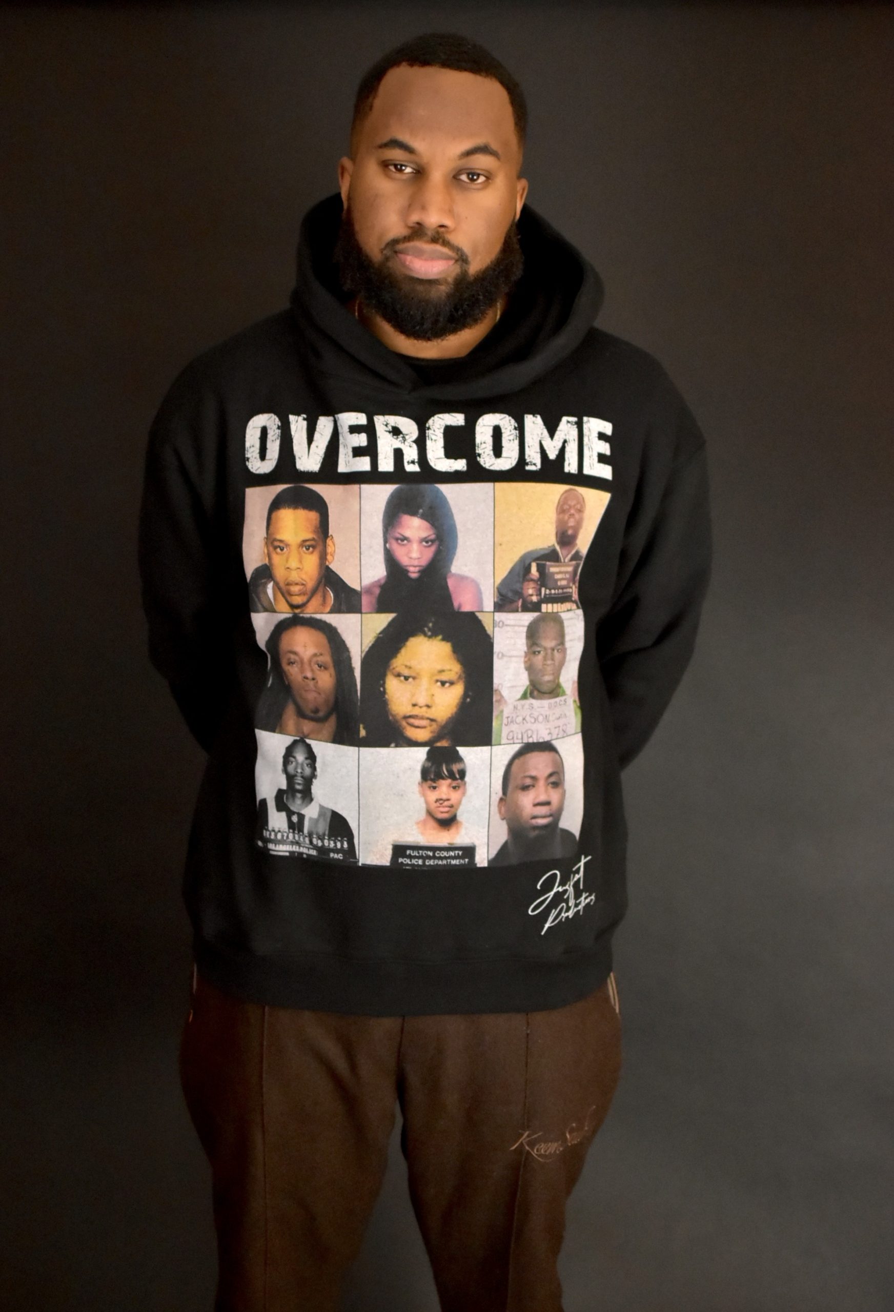 You can overcome your past hoodie. A collage of iconic Mugshots in Hip-Hop Culture. Made from DTG Printing. 100% cotton as well.